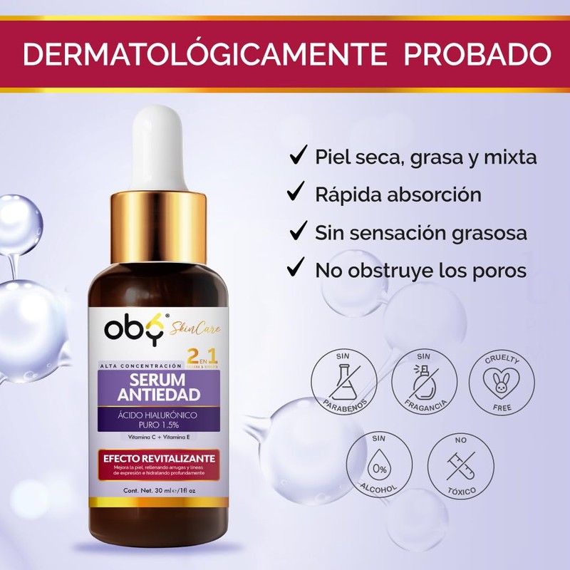 - OBY Serum Antiedad 30ml. Serum facial Hidratante efecto Revitalizante 2 en 1 que ayuda a mejorar la piel rellenando arrugas y líneas de expresión e hidratando profundamente.