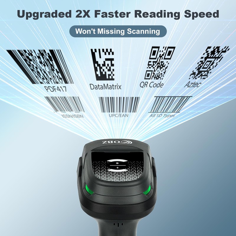 OBZ Bluetooth Barcode Scanner, 2D 1D QR Code Scanner, Handheld 2.4G Wireless Barcode Scanner Connect Smart Phone, Tablet, PC, POS, USB Cordless Barcode Reader Work with Mac OS, Windows, iOS, Android