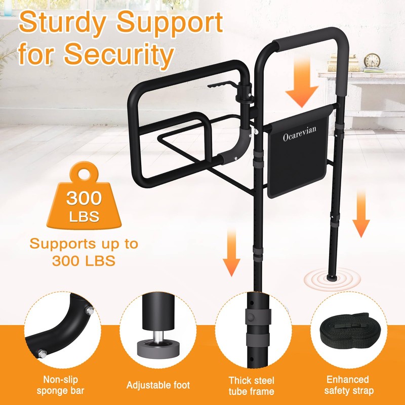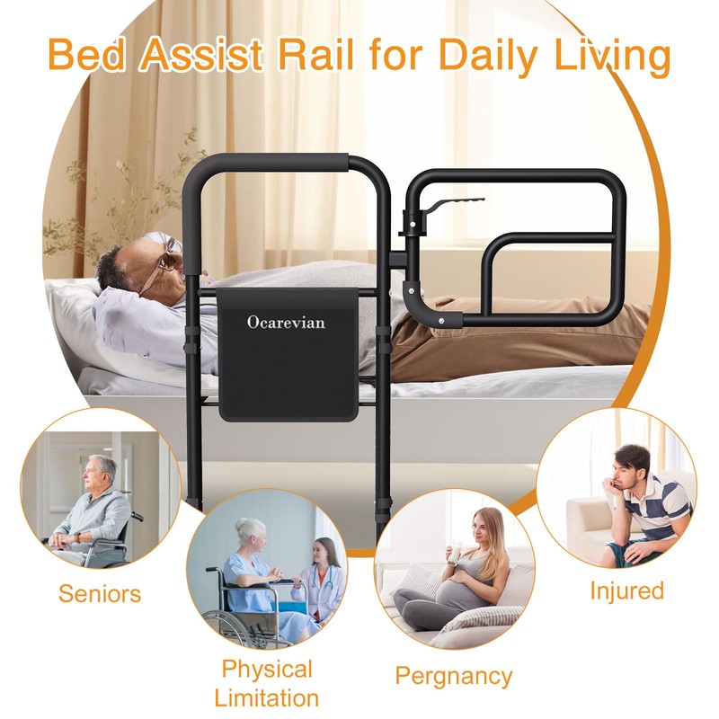 Ocarevian Adjustable Bed Rails for Elderly Adults, Safety Bed Guard Rails with Storage Pouch, Fits King Queen Full Twin Beds, Senior Bed Assist Rails (Black)