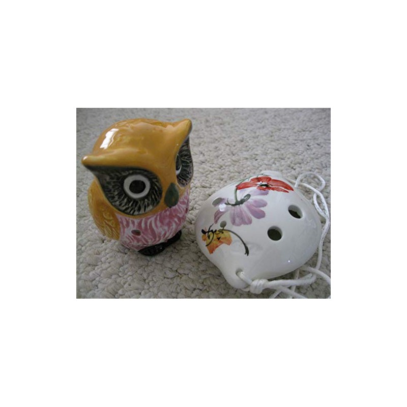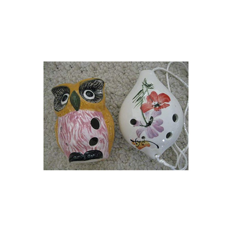 Ocarina Combo Offer: One Ceramic Owl Pattern Ocarina & 6 Holes Pear Shape floral pattern ceramic Alto-C ocarina. Very Artful Design Pattern. Good Sounding - Voluminous and Warm Sounding.