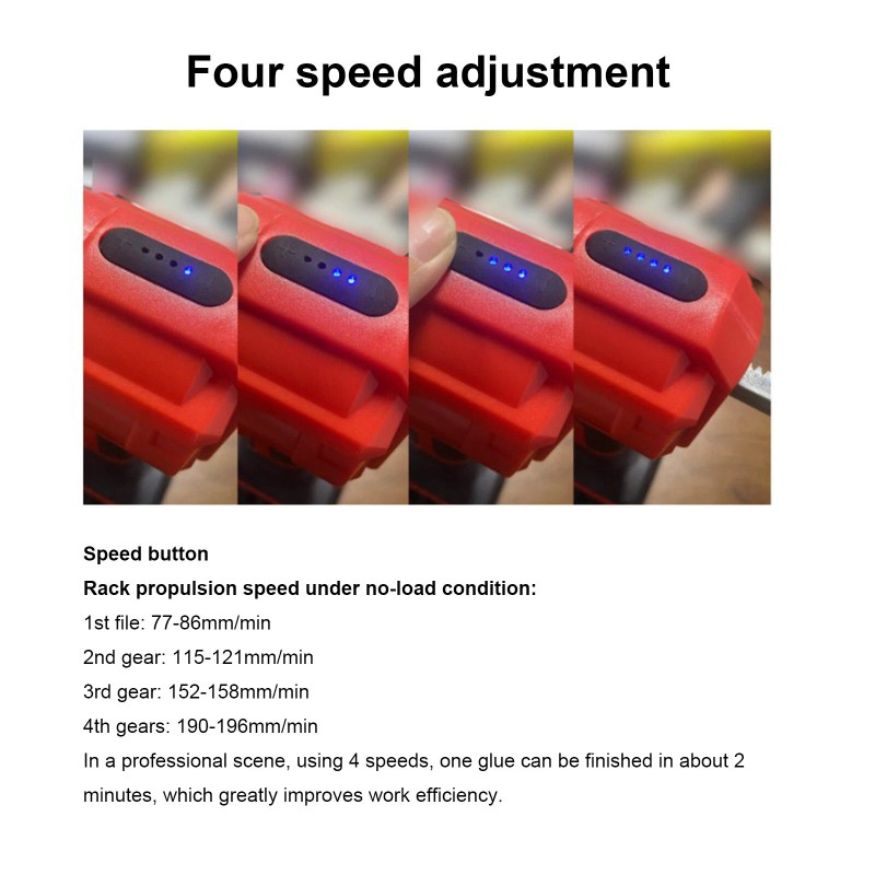 Adjustable Propulsion Speed: Four propulsion speeds (3.03-3.39in/min, 4.53-4.76in/min, 5.98-6.22in/min, 7.48-7.72in/min) can be adjusted according to different needs. And when using the fastest speed (16,500RPM) it can finish using a glue stick in 40 seconds.
