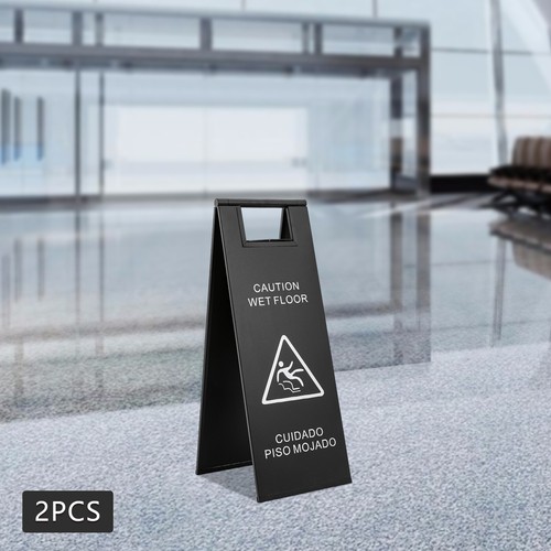 OCASAMI 2Pcs Stainless Steel Wet Floor Sign Caution Wet Floor Sign Safety Warning Sign