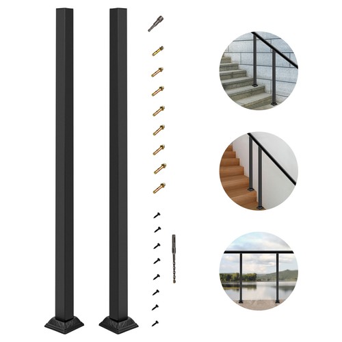 OCASAMI 2x 38" Black Deck Railing Wrought Iron Handrail Post Kit Square Metal Fence Post