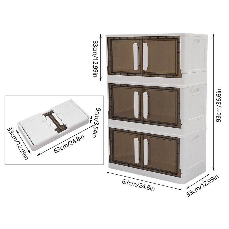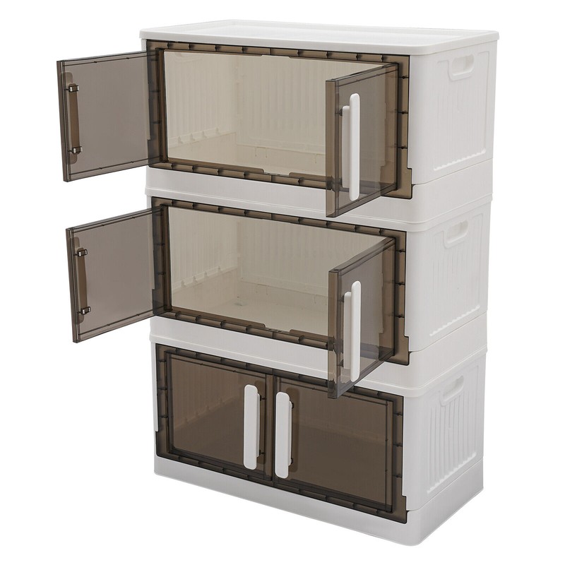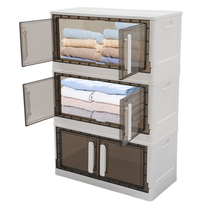 OCASAMI 3 Stackable Storage Cabinet With Lids Storage Bins Storage Box With 4 Wheels