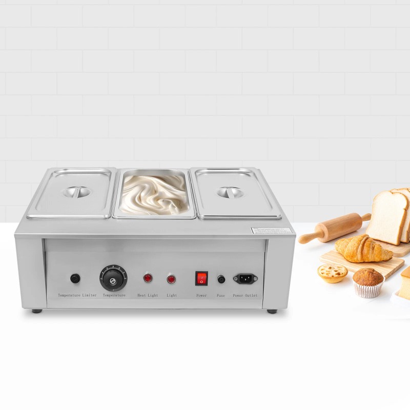 It melts chocolate, butter, etc., and keeps milk tea, pearls, soups, milk, etc. warm. It is suitable for beverage stores, restaurants, breakfast stores, dessert stores, buffet stores, cafeterias and other places.