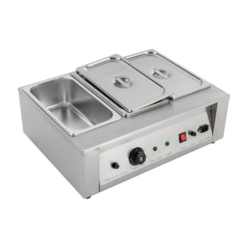 Do you still have trouble with chocolate solidifying fast and food getting cold quickly? This chocolate melting pot is made of 304 and 201 stainless steel through sanded and welded processes, a single tank can hold 8.82lbs items, and the temperature control range is accurate to 32℉-176℉, which makes your making process more efficient and hassle-free! It is an excellent choice for melting chocolate and keeping your drinks and meals warm!