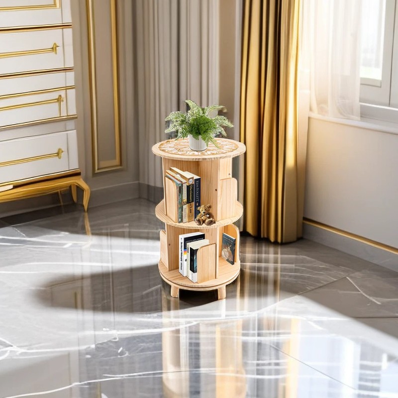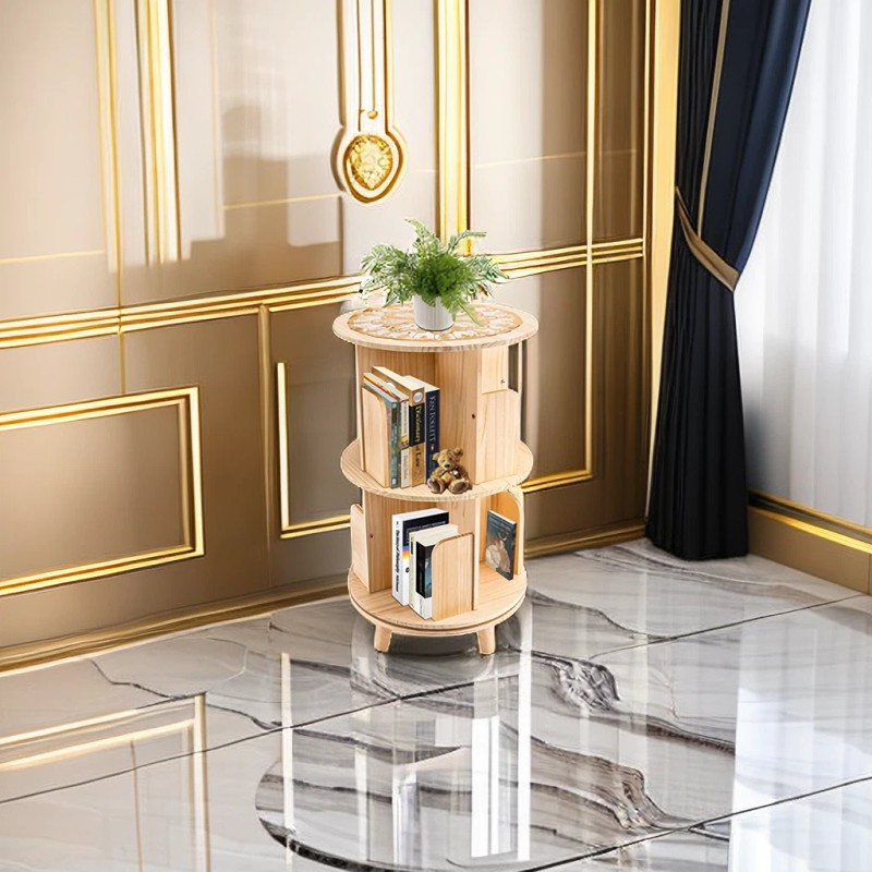 OCASAMI 360 Rotatable Bookshelf Wood Bookcase Storage Shelf Souvenir Book Display Rack