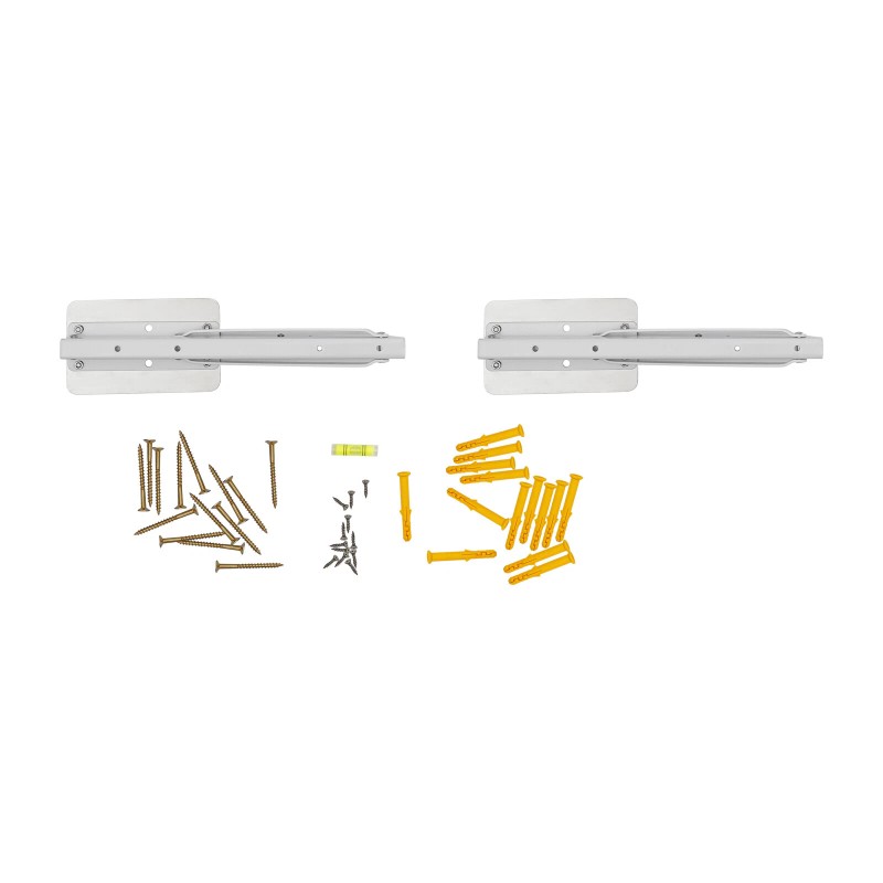 - The product has 2 kinds of installation methods. The first one is the hole-free version: you need to prepare strong glue(not included), apply the glue to the iron plate, and then install the desktop after the glue is fixed. The second is the expansion screws on the wall version: you need to remove the silver iron plate from the bracket, and then according to the bracket above the holes in the wall to confirm the position of the expansion screws into the fixed.