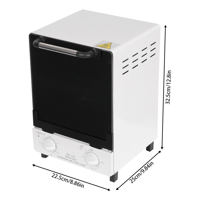 Smart Function: Equipped with an intuitive temperature control knob and a time control knob, this machine allows you to precisely adjust the heat (32-482℉ ) and time (0-30min) to precisely sterilize different supplies.