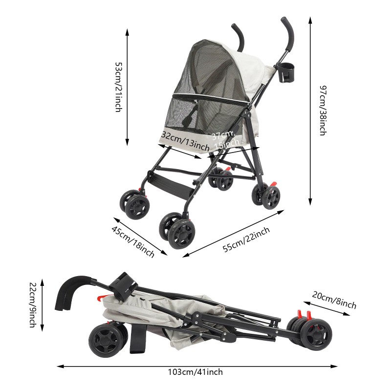 OCASAMI Pet Stroller 4 Wheels Posh Folding Waterproof Portable Travel Cat Dog Stroller