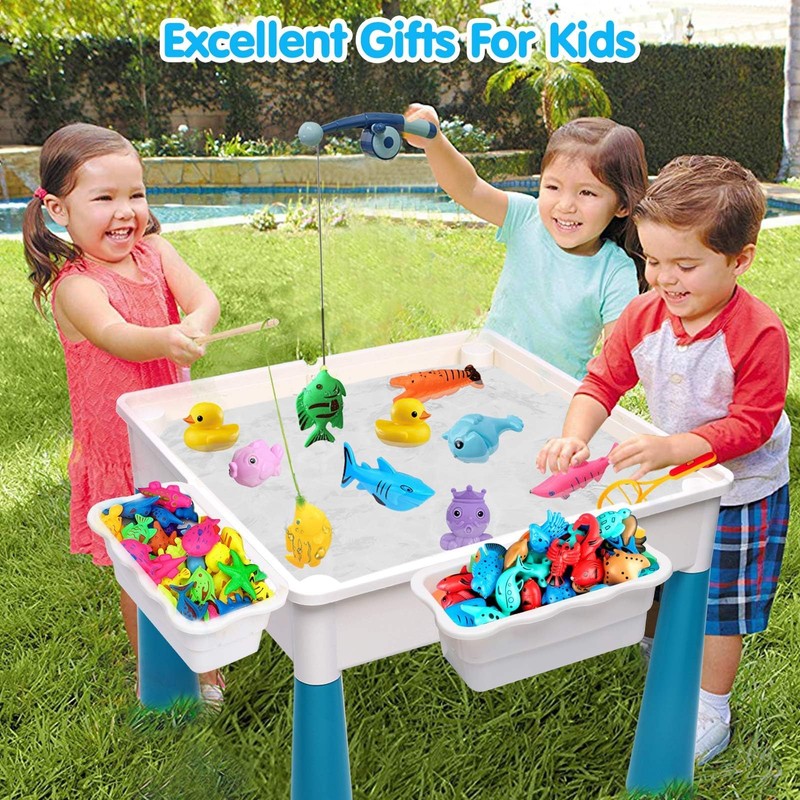- 【All-in-One Kids Activity Table】Kids table and chair set comes with 2 chairs and a reversible top for building blocks or learning, even eating meals. With leak-proof design, also used as water table or sand table. Deep table body & 4 bins, brings super capacity for storage table without mess. What a versatile table for kids multiple activities!