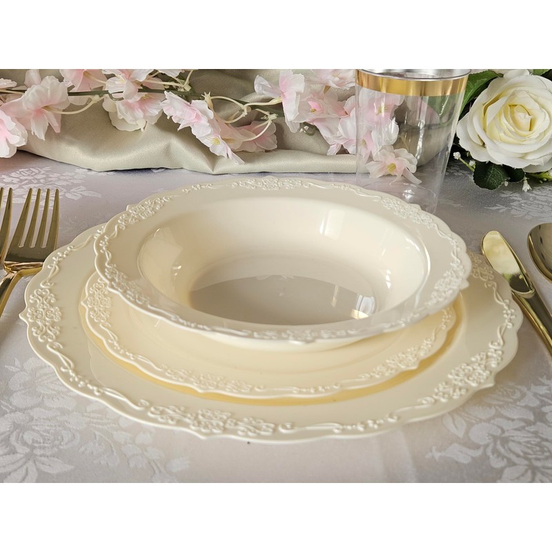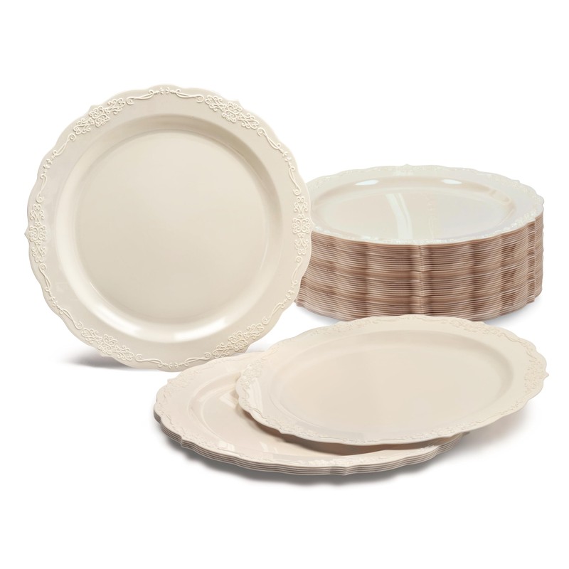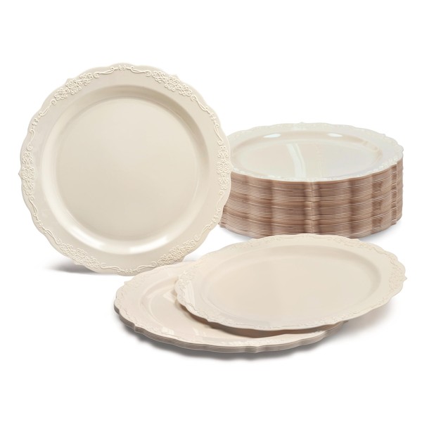 " OCCASIONS " 60 Plates Pack, Disposable Wedding Party Plastic Plates (7.5'' Appetizer/Dessert Plate, Verona in Ivory)