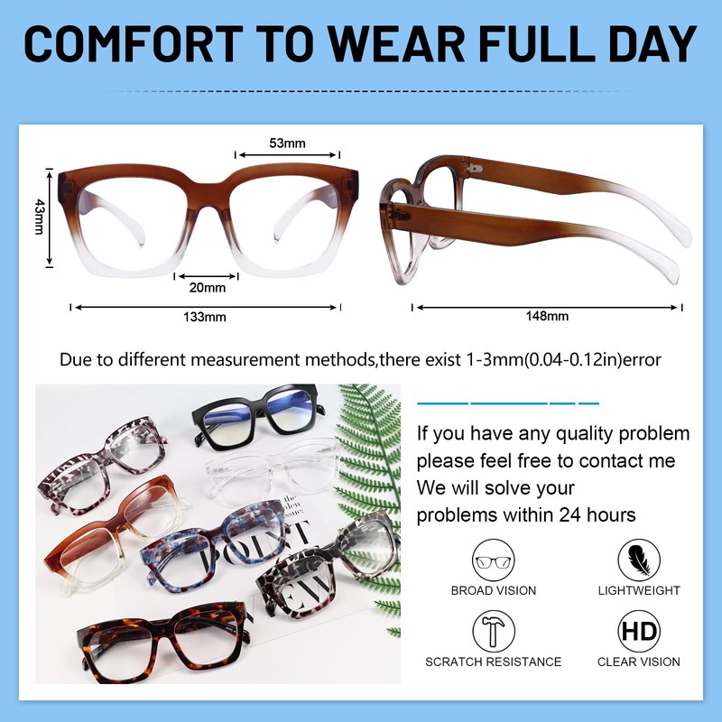 - Clear lens :OCCI CHIARI reading glasses has optical,strong,durable frame and clear acrylic ,non-polarized, Rectangular lenses.The acrylic lenses have the function of blocking the sand and are clear enough. This women’s oversized reading glasses 5.0 have A-class HD&clear lenses which have higher precision as well ,this reader glasses have 100, 125, 150, 175, 200, 225, 250, 275, 300,350,400,500,600 strength for selection.The lenses can be replaced with other lenses.