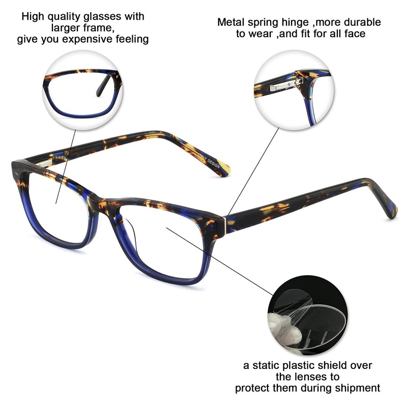 • Durable&lightweight:Reading glasses women, textured acetate frame, durable and do not fade. High quality plastic temple and acrylic lenses, lightweight and comfortable, no pressure on the nose.,this reading glasses using life is more than 3 years after 42356 times of elastic spring hinge test,the high elastic spring leg can prevent it clip your face.