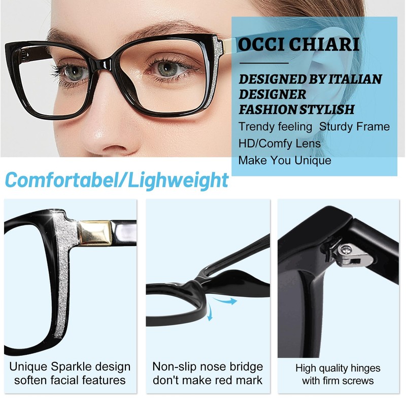 - Clear lens/good magnification :OCCI CHIARI lense is made of the acrylic lenses,is clear enough,Easy to Clean.This reading glasses have A-class clear lenses which have higher precision as well ,Use them daily for small print reading,makes the vision clear,give you a very big and sharp view