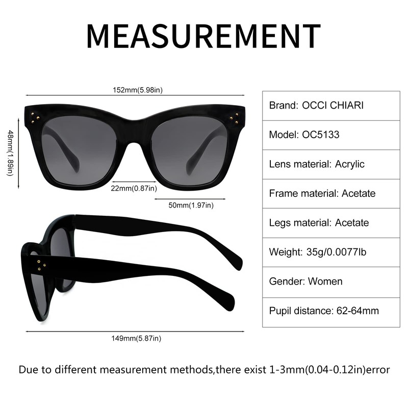 • STURDY & COMFY: OCCI CHIARI sunglass readers made from imported material, well polished and sturdy frames not only increasing the using life,but also bring a skin-friendly touch. one piece nose pad won't leave red marks on your nose , provide all-day-long comfort for you.