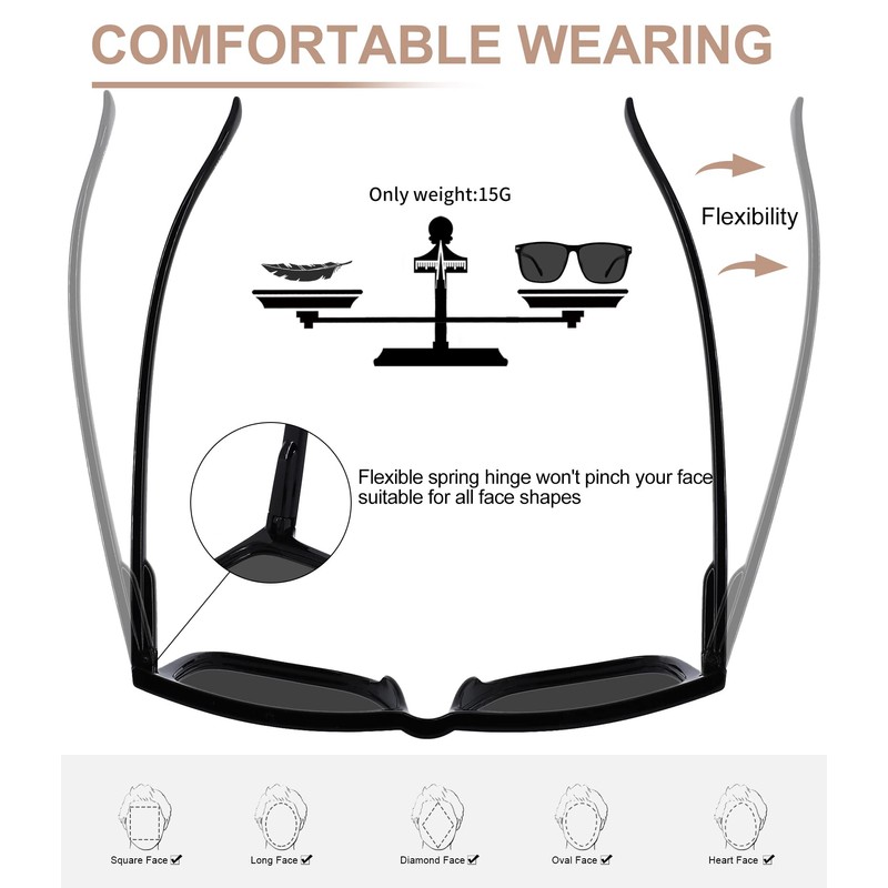 100% UV400 eye protection reading sunglasses for men, effectively & blocks glares reflected by mirrors, shiny or polished materials or any other kind of sun rays reflection, give you a natural & clear vision; Sturdy ,scratch resistant lens and shatterproof; bring you good visual experience when you are reading outside