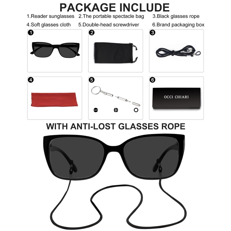 - 100% UV400 protection reader sunglasses: OCCI CHIARI reading sunglasses for women 1.75 with entire lens magnified and 100% UV400 protection, perfect for outdoor reading,give you a natural and clear vision when you read your phone or book at the pool , beach, protecting your eyes from the UV rays.