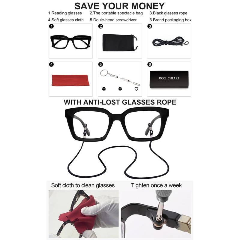 - STYLE WITH IN OCCI CHIARI:Recover your love for reading while being in style. OCCI CHIARI takes pride in designing high-quality and stylish solutions to common eyesight needs. Reading glasses aren't just for the little old lady set. All frames are designed to keep you looking au courant no matter what your age. If you have macular degeneration or cataracts, a visit to your ophthalmologist can help you determine which magnification is best for you