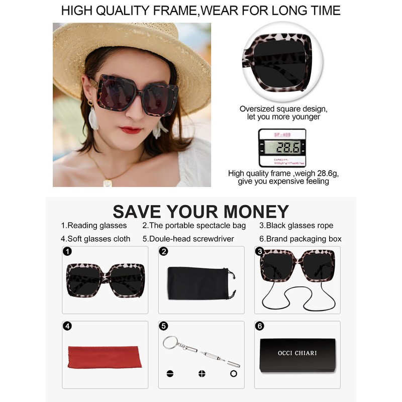 OCCI CHIARI Sunglasses Reading Glasses Sunglass Readers for Women Large Frame 1.5 UV Protection Outdoor 1.0 1.25 1.5 1.75 2.0 2.25 2.5 2.75 3.0 3.5
