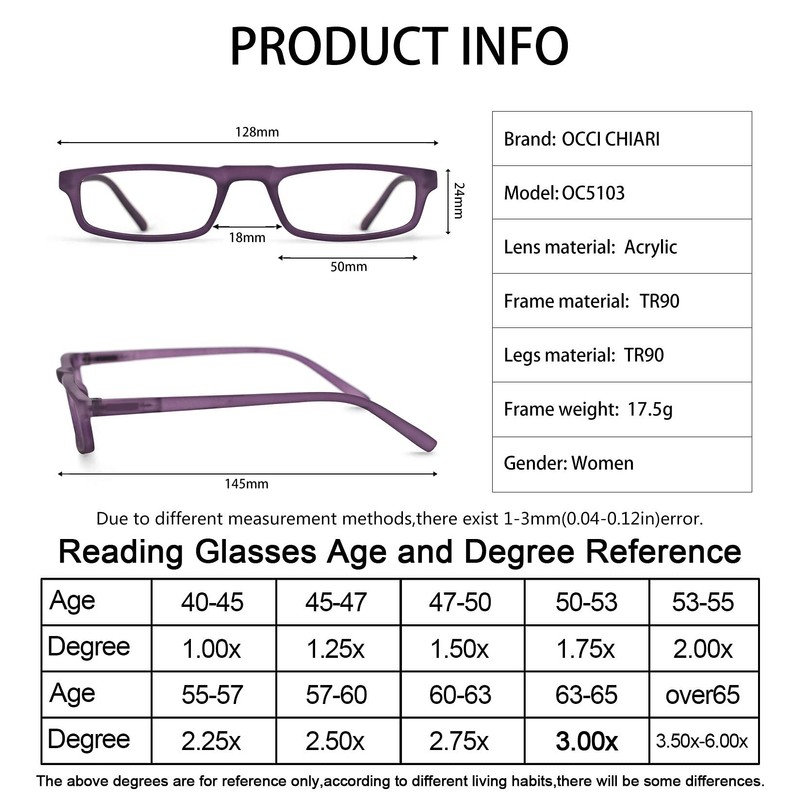 OCCI CHIARI Womens Reading Glasses TR90 Reader For Men 1.0 1.25 1.5 1.75 2.0 2.25 2.5 2.75 3.0 3.5 4.0 5.0 6.0 (Purple,225)