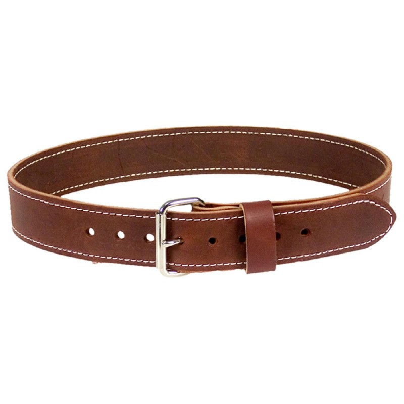 Extra heavy duty work belt constructed of Bridle leather, custom tanned to strict specifications. Edge stitched for quality, appearance and strength. Heavy duty 2-inch steel roller buckle with a nickel finish. Available in sizes small through xx-large. Made in the USA.