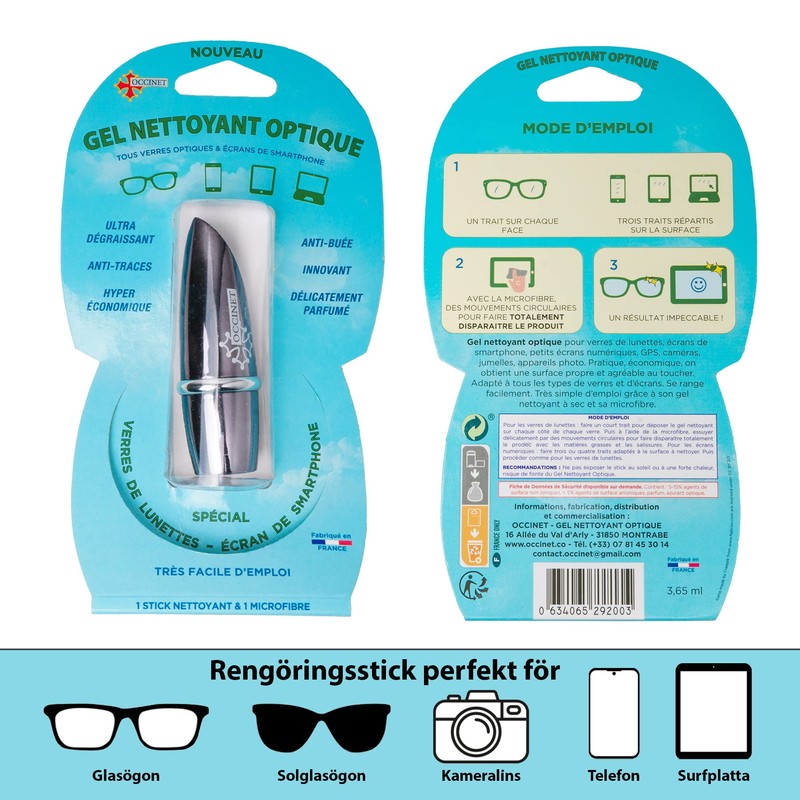 - CLEAR VIEW IN SECONDS: The OCCINET glasses cleaning stick and microfiber cloth gently and comfortably cleans away dirt, dust or grease and dries in seconds for fast, clean results. The glasses cleaning cloths are also ideal for quick cleaning of LCD displays, smartphones, iPhones, iPads, tablet PCs and laptops.