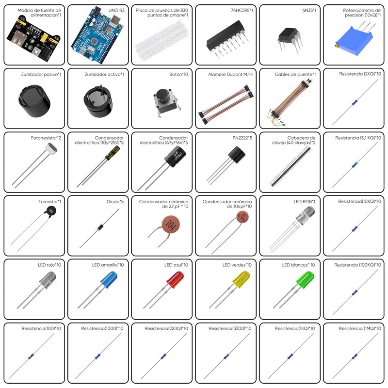 - GRAN REGALO: Este kit de electrónica es una gran elección y un regalo perfecto para su hijo, amigo, familiar o cualquier persona obsesionada con la electrónica, la programación o la robótica. ¡Permítales dar el primer paso en su viaje por la electrónica