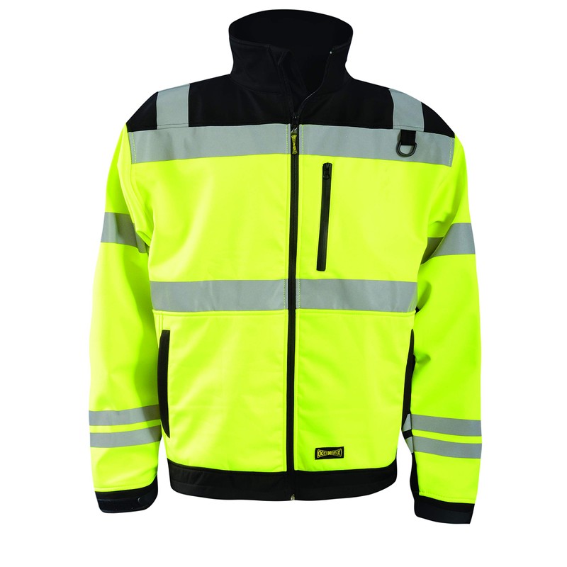 OccuNomix LUX-M6JKT-YM Water Resistant & Breathable M6 Soft Shell Jacket with 6 Pockets & D-Ring, 3 Season Design, Class 3, 100% ANSI Polyester, Medium, Yellow (High Visibility)