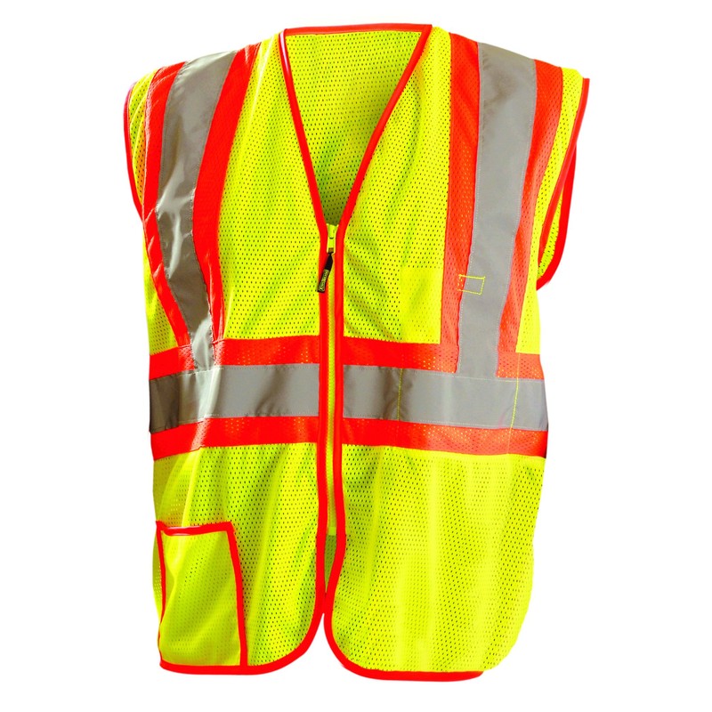 Pockets Zipper Closure Class 2 Classic Vest Two-Tone X-Large Polyester Mesh Hi-Viz Yellow 2" Reflective Tape
