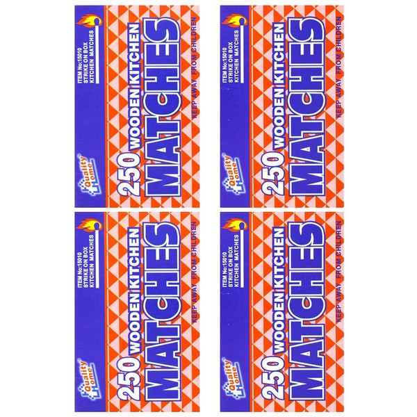 OCD BARGAIN, Wooden Kitchen Matches 250 with Strike On Box - for Candles, Kitchen, Camping, Out Door - 250 Per Pack (4)