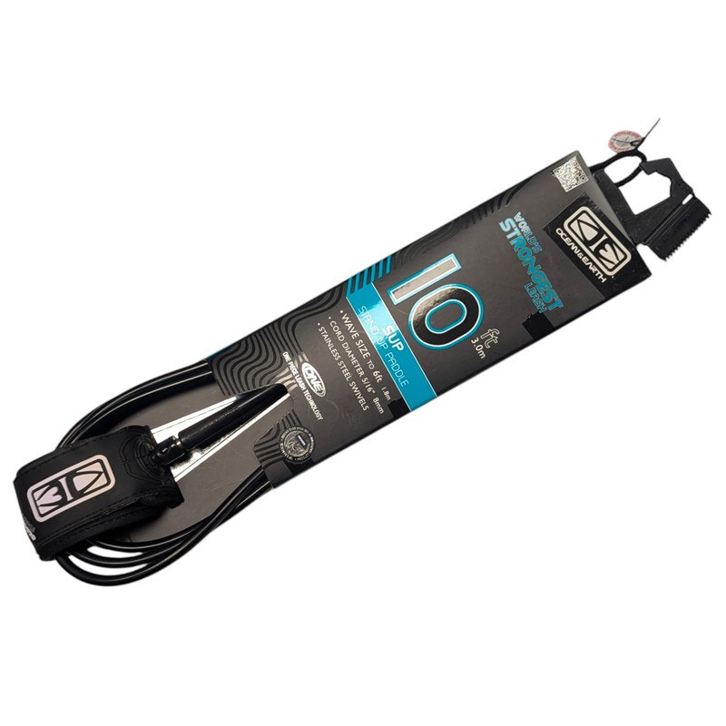 Ocean Earth 10ft Surfboard Leash, Premium SUP Paddle Cord, Black, 8mm Thickness