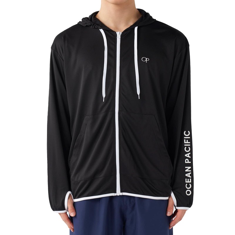 Ocean Pacific 515460 Men's Rash Guard UV Protection Hoodie, Plain, M-5L, Black, M
