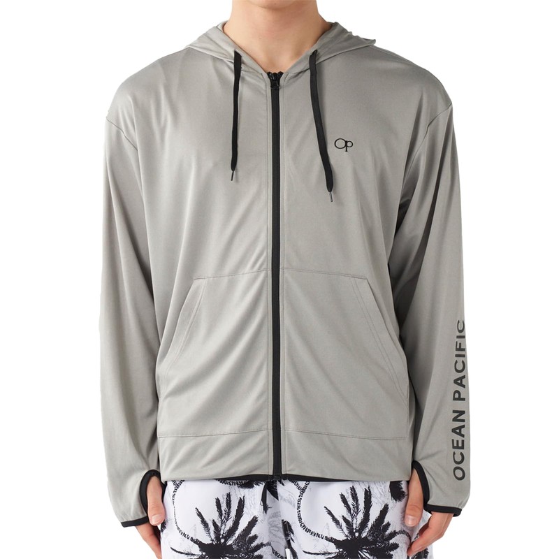 Ocean Pacific 515460 Men's Rash Guard UV Protection Hoodie, Plain, M-5L, heather gray, LL