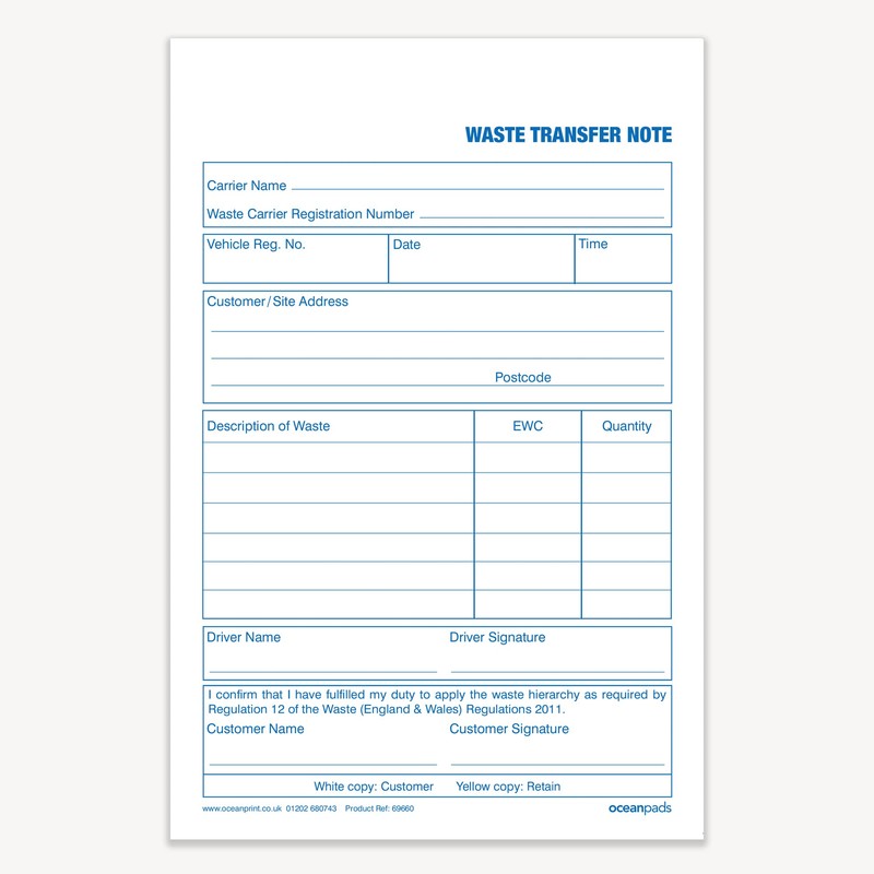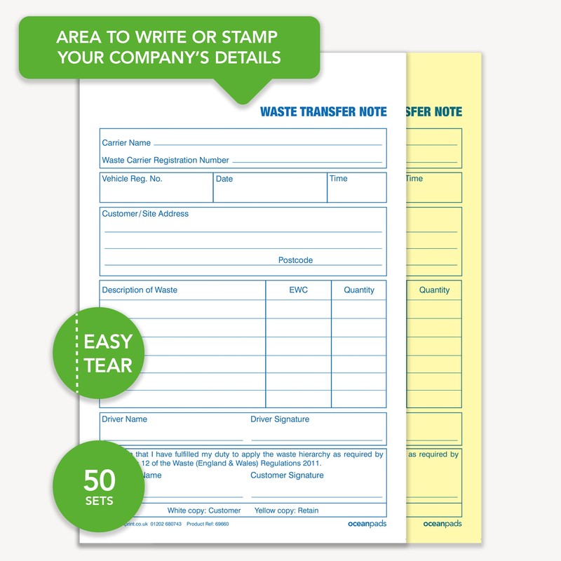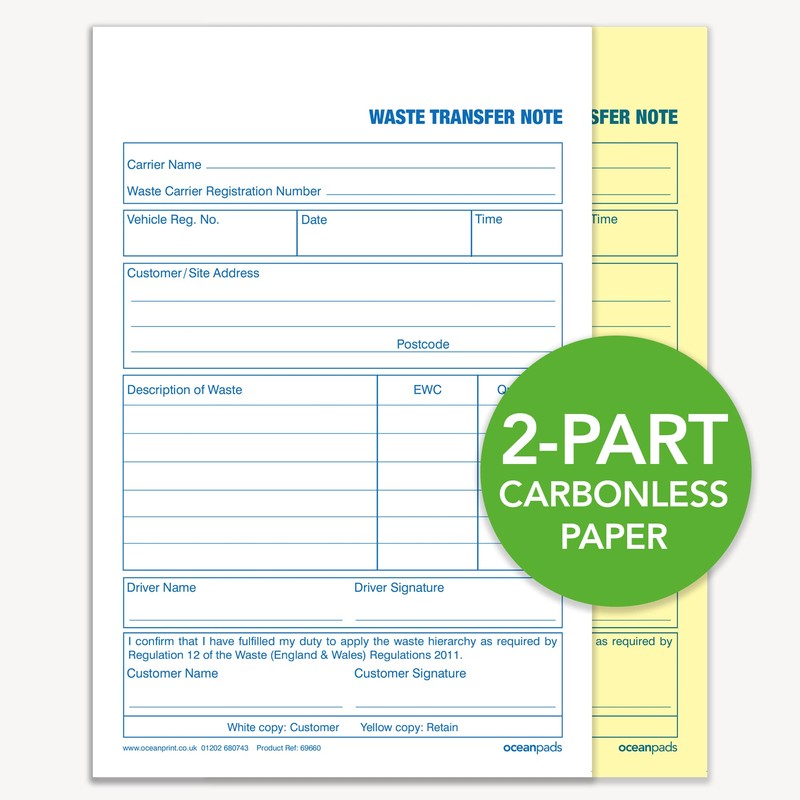 Ocean Pads Waste Transfer Note, A5, Duplicate (69660)