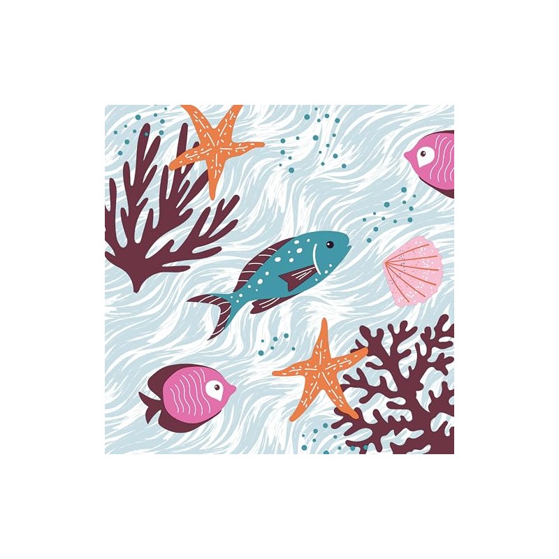 Ocean Safari napkin with colourful fish, shells, starfish and coral. This is a quarter motif that is great for maritime decorations with the napkin technique.