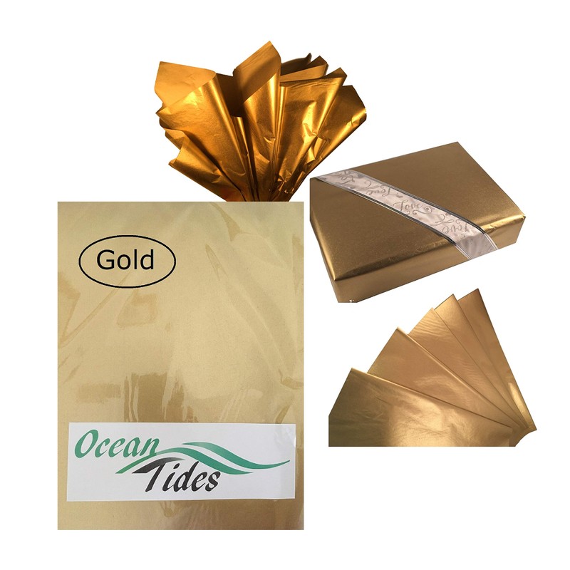 Ocean Tides Tissue Paper Gift Wrap Bulk Wrapping 50 Sheets | Solid Gold and Gold Stars | Gift Wrapping Paper Pack for Birthdays, DIY Crafts, Christmas | 15 x 20 inches |