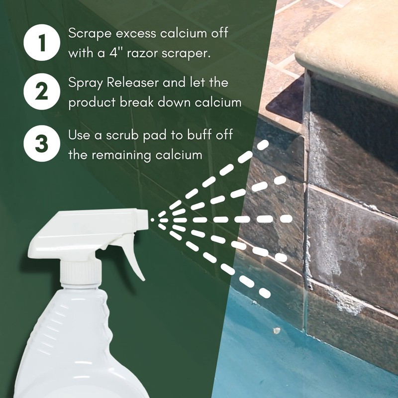 OCEANCARE Products - Calcium Releaser - Quart Trigger Spray, 32 FL OZ - Pool Tile Cleaner Calcium Remover, Safe on Glass, Porcelain, and Ceramic Surfaces - Calcium Cleaner - Tile and Grout Cleaner