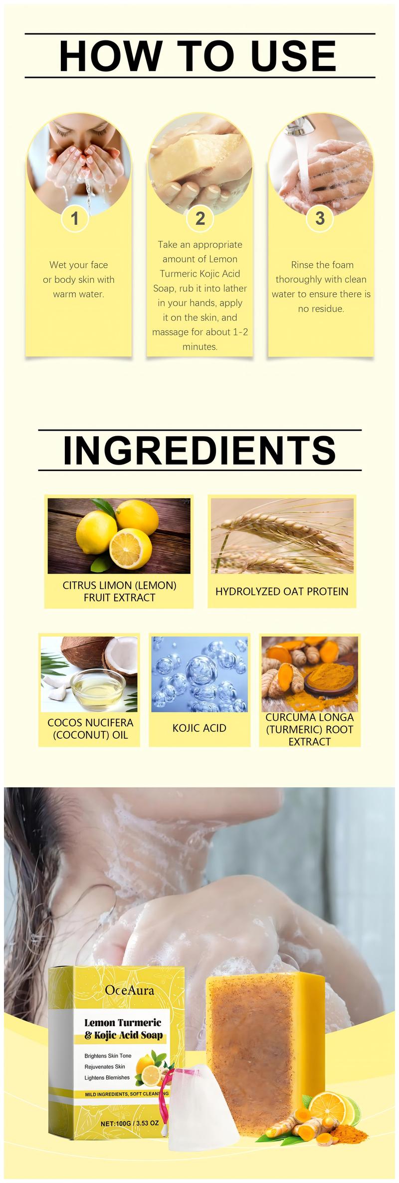 OCEAURA 4PCS Lemon Turmeric KojicAcid Soap BarTurmeric Soap BarKojic AcidSoap for Face Facial SkincareRadiant Comfort - Quantity: 1