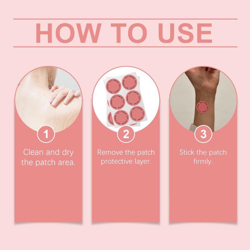 How to use: Gently remove the patch from its backing and place it ona clean, hair-free area of your skin. To ensure effectiveabsorption, avoid applying lotions or creams to theapplication area.