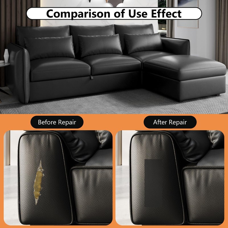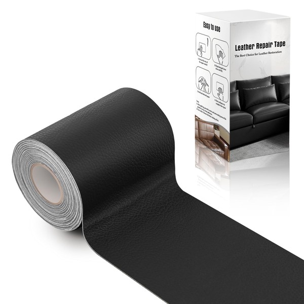 OcePor Self Adhesive Leather Repair Patch, 4 x 60 inch Leather Repair Tape, Leather Patches for Furniture, Vinyl Repair Kit for Couches, Boat Seats, Furniture, Cars(Black)