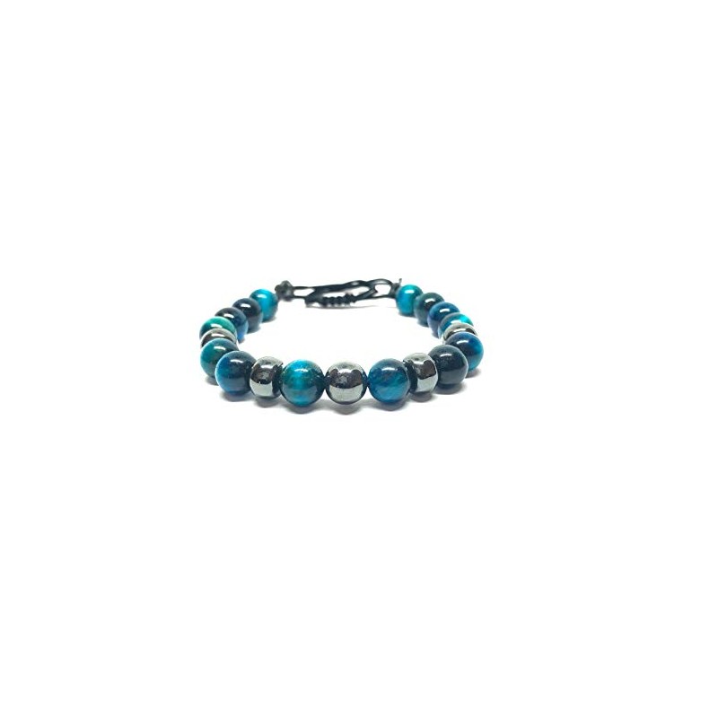Ochrana Pulsera Ajustable de Ojo de Tigre Azul zircón con hematita de 8mm