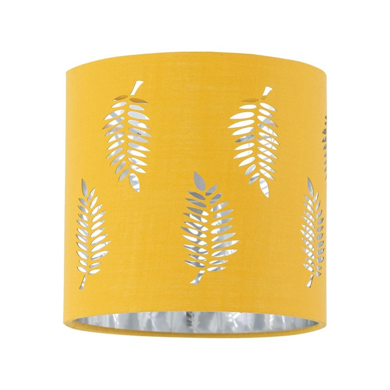 Ochre Yellow Table Lamp Shade, Lampshade for Table Lamp or Bedside Light, Fern Leaf Cut Out Design, Diameter 15cm
