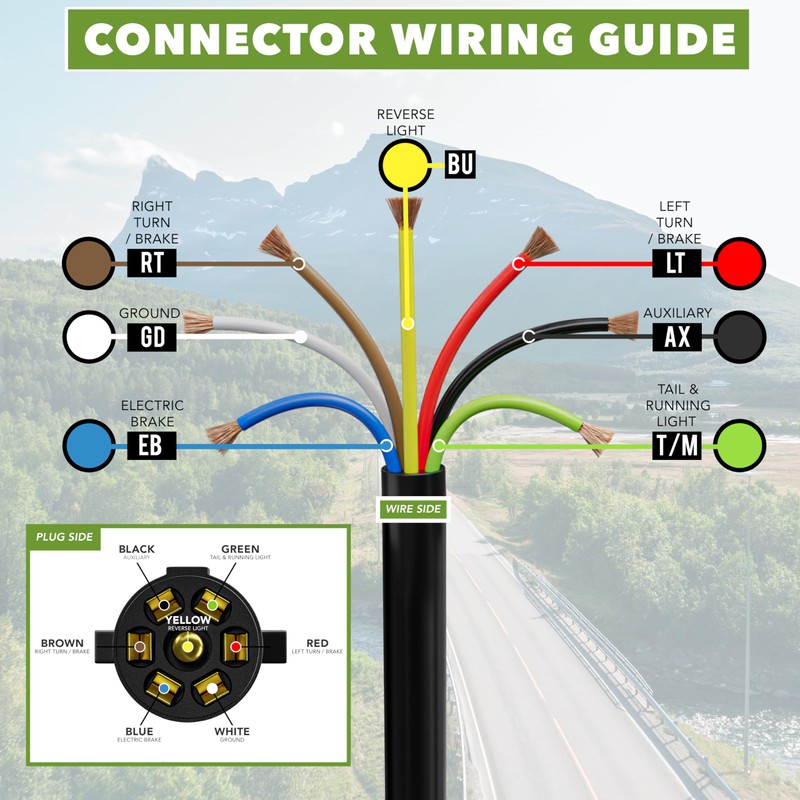 - Hoja de cobre de 7 vías de 4 pies moldeada en un enchufe resistente, proporciona una manera rápida y simplificada de conexión de cables, así como mantener todo el cableado de tu remolque en orden.