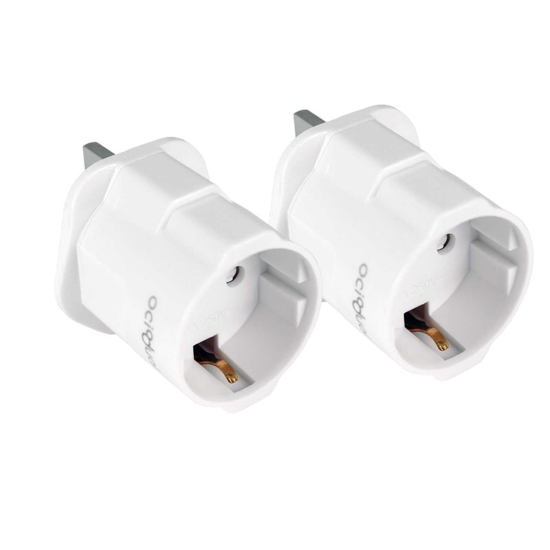 OcioDual 2 x European to UK Plug Adapter, Travel Plug Adapter, Type C, E and F to Type G Plug, Model YD-1310, 250V/13A White, 2-Pin to 3-Pin Converter, CE/RoHS Certification