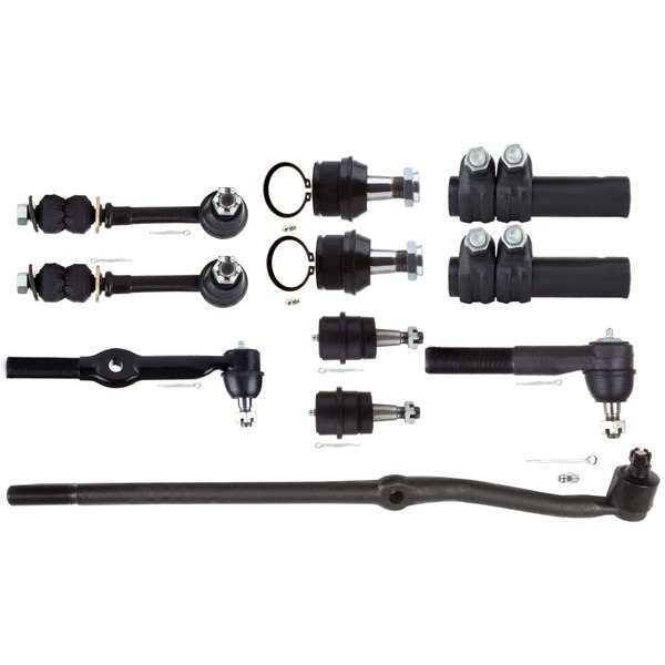 - [SUSPENSION KIT CONTAINS] 1 ES3249RT Front Inner Tie Rod End - At Pitman Arm, 2 K8195T Front Lower Ball Joint, 1 ES3247RT Front Outer Tie Rod End - Driver Side, 2 K7280 Front Sway Bar End Link, 2 K3134T Front Upper Ball Joint, 1 DS1309 Outer Tie Rod End - Passenger Side, 2 ES2012S Tie Rod Adjusting Sleeve - Passenger Side