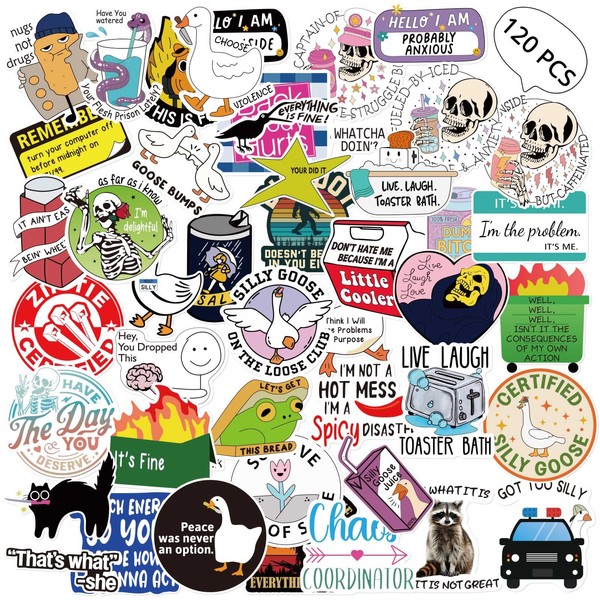 OCQOTAT 120pcs Funny Waterproof Stickers Adults Meme Prank Sarcastic Stickers Pack for Water Bottles,Laptops Decals,Phones,Hard Hats,Bumpers,Car,Gaming Consoles Scrapbooking-Vinyl Decals(2 of Each)