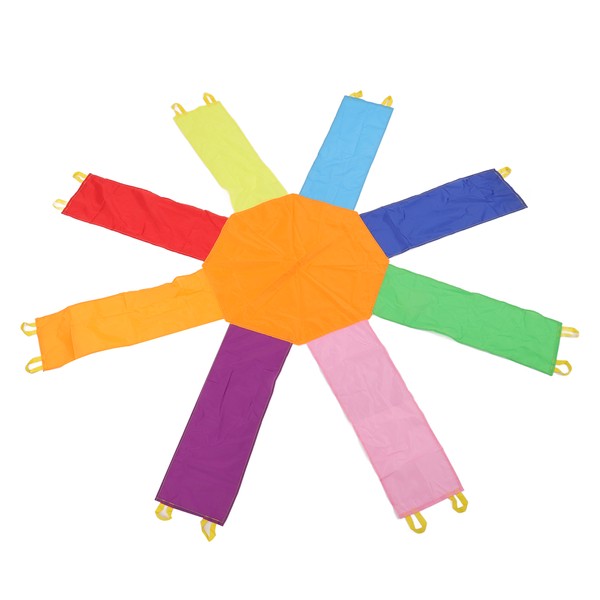 1、Multi Purpose: Great fun for kids of all ages, group play that promotes cooperation, helps develop kids' teamwork skills, visual development, while helping build physical coordination and fine motor skills. 2、Premium Material: The octagonal fun game umbrella is made of polyester cloth material, which is wear resistant and foldable. Simply machine wash in a delicate mild soap and air dry at the end of the day to clean again. 3、Multifunctional: The sense training rainbow umbrella enhances reflexes and collaboration, is stowable and portable, easy to play, parent child interaction, impact resistant and durable. 4、With 16 Handles: Fun game umbrella is perfect for birthday parties, picnics, family gatherings, parks, schools, parenting classes and more. Teach cooperation and improve motor skills through group play. 5、Suitable Venue: This octagonal fun game umbrella is ideal for recreational and educational cooperative groups, kindergartens, parent child activities, children's amusement parks to play outdoor games. Helps children develop perceptual, cognitive, motor and academic skills. 6、Durable Prop: This octagonal fun game umbrella is specially reinforced with double stitching that won't break after repeated use, so you can use it for years. It is a good game prop to exercise children's teamwork ability!