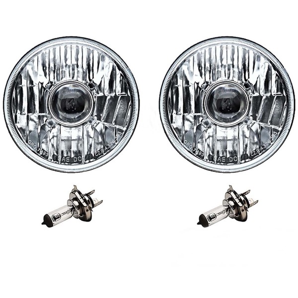 Pair Of 5 3/4 inch Projector Crystal Clear Glass Lens - Metal Back Halogen Headlight Bulbs. This Set Includes 2 Low/High Beam Headlights With Halogen 55/60W Light Bulbs (No Wiring Or Bucket Modification Needed).