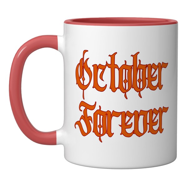 October Forever Jack-O-Lantern Head Flaming Forest Ceramic Mug, Red/White